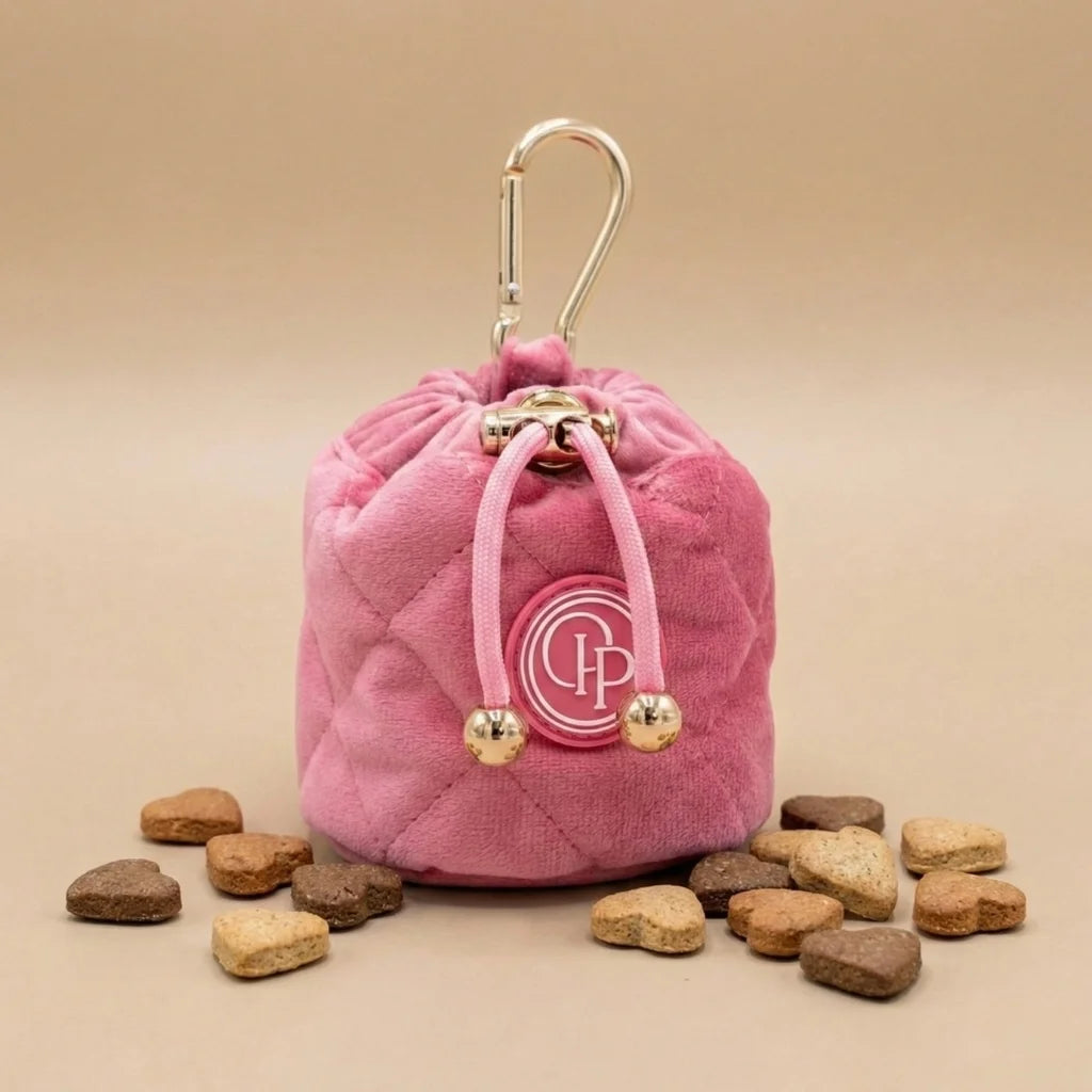 Welurowa saszetka na smaczki marki Pupparisian w odcieniu urokliwego, cukierkowego różu to niezastąpiony element każdego spaceru i treningu. Łączy w sobie luksusowy design z maksymalną funkcjonalnością, udowadniając, że praktyczne akcesoria mogą być jednocześnie niezwykle stylowe. Wykonana z najwyższej jakości, miękkiego weluru, idealnie dopełnia radosną, różową kolekcję Twojego pupila.