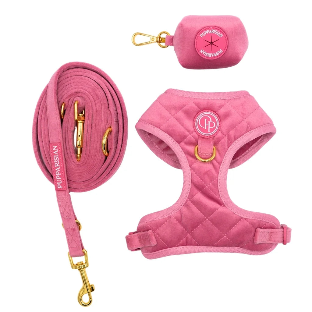 Urocze, bezuciskowe szelki Pupparisian w odcieniu cukierkowego różu to idealne rozwiązanie dla psów o wrażliwej skórze i delikatnej budowie. Uszyte z najwyższej jakości pikowanego weluru, gwarantują miękkość i komfort noszenia nawet podczas długich spacerów. Materiał nie powoduje otarć ani podrażnień, a przy tym prezentuje się niezwykle stylowo, radośnie i luksusowo.